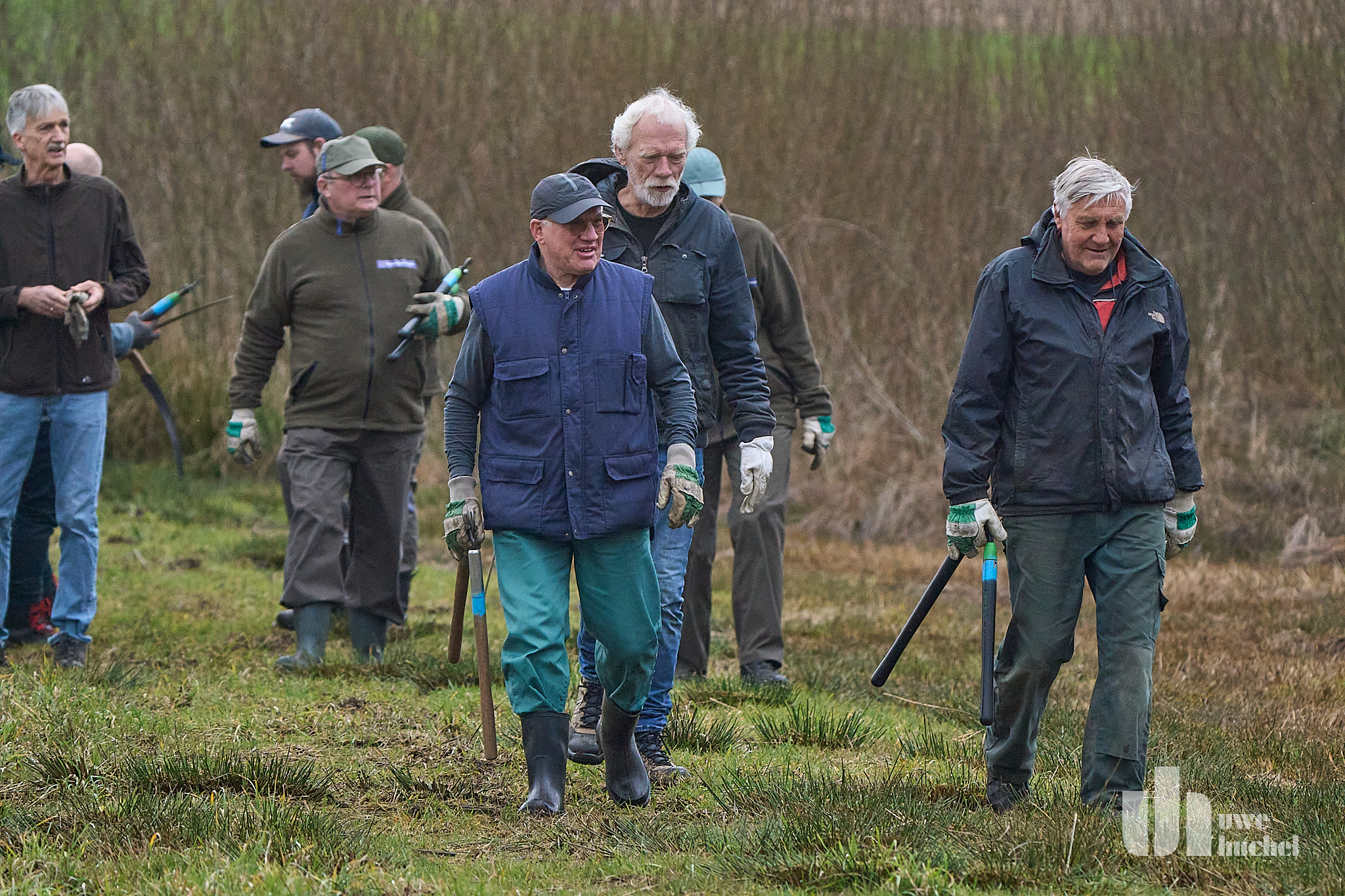 Jos Vantilt, Vorstandsmitglied IVN, und Harry van de Laar,. Wethouder van Beekdaelen, begrüßten die Teilnehmer. Enzo Mater, Förster von Natuurmonumenten, und Frank Donkers vom Nabu Selfkant e.V. zeichneten sich für den Arbeitseinsatz verantwortlich.