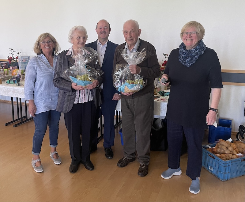 Die beiden ältesten anwesenden Senioren Olga Peter (91) und Josef Jessen (91) beide aus Frilinghoven wurden mit einem Präsent besonders begrüßt.