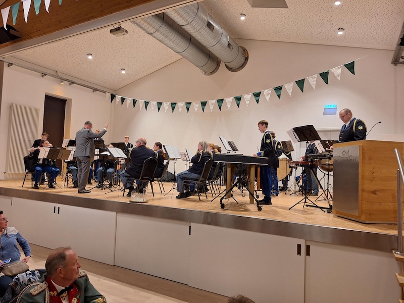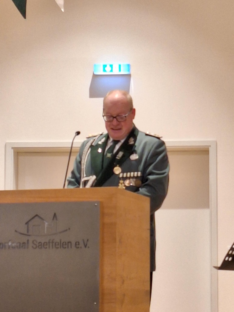 Der Präsident der St. Sebastianus Schützenbruderschaft Saeffelen, Frank Clever, kündigte zu Auftakt einen musikalischen Beitrag des Musikvereins St. Gregorius Saeffelen an, der die Gäste auf die bevorstehenden Ehrungen einstimmte.