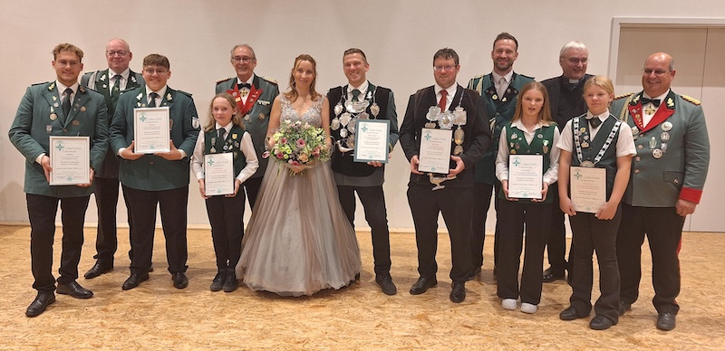 Der neue Dekanatskönig Dennis Schmeitz wurde für seine herausragende Leistung geehrt. Gemeinsam mit seiner Frau Vera Schmeitz, die nun als Dekanatskönigin fungiert, wird er die Bruderschaft und das Dekanat repräsentieren. Präsident Schmeitz betonte: „Du trägst die Dekanatskönigswürde mit Stolz, mit Haltung – und mit einem Lächeln – das zeigt: Du bist genau der Richtige für dieses Amt.“