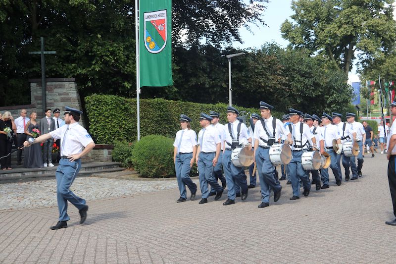 Das Trommler-, Pfeifer- und Fanfarencorps Höngen war am Samstag beim Festakt aktiv dabei und spielte im Konzertreigen auf. Wobei der Sonntag nicht nur wettermässig auftrumpfte. Der Besuch in der Halle war am Nachmittag bestens, der Festzug legte eine Spielmannswolke über den Ort. Neben der Schützenbruderschaft waren das Trommler- und Pfeiferkorps Breberen erneut aktiv. Mit im Festzug dabei waren der Musikverein Langbroich-Harzelt/Schierwaldenrath, ferner die Spielmannsleute aus Waldenrath, Hastenrath, Gillrath sowie Schierwaldenrath/Bocket. Der Vorbeimarsch am Ehrenmal lockte viele Musikfreunde an.