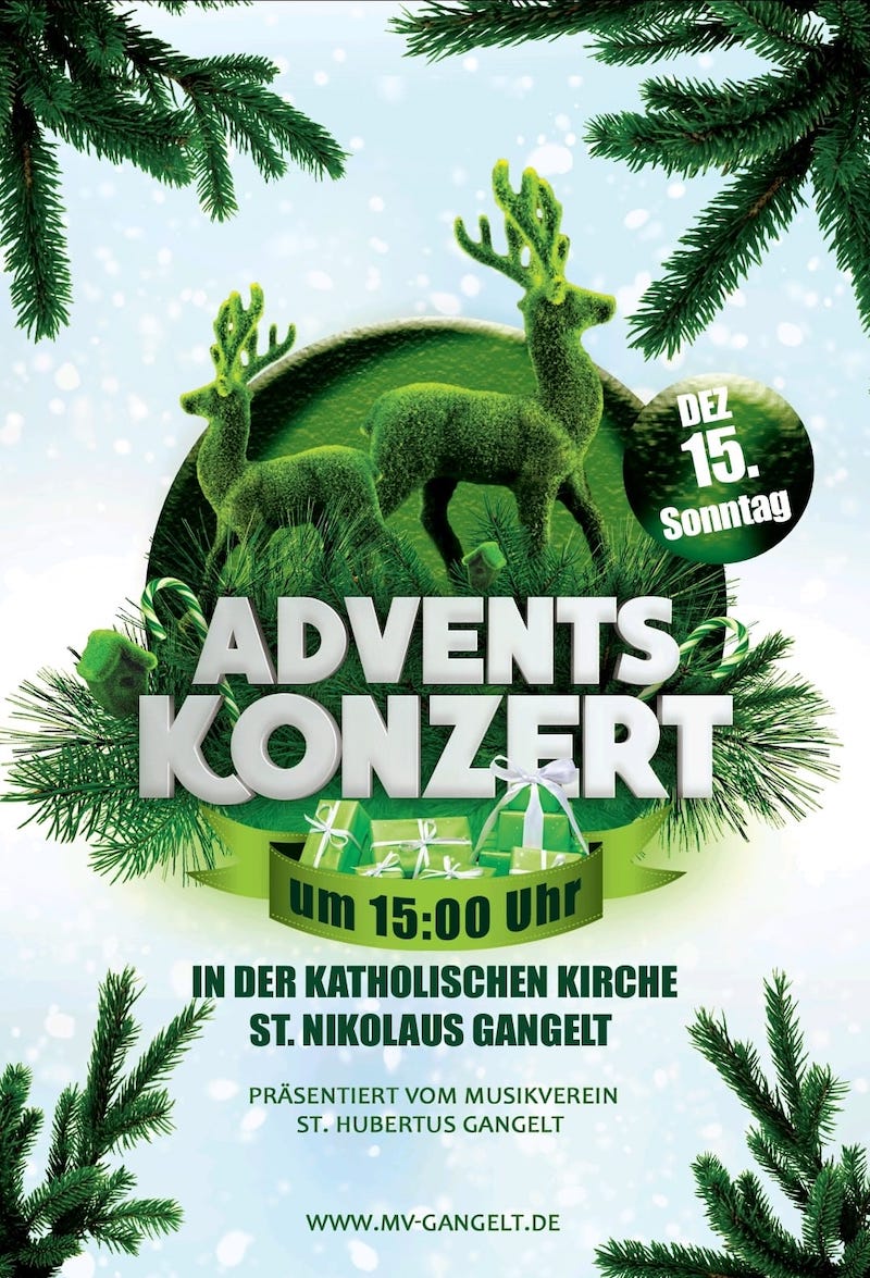 Der Musikverein St. Hubertus Gangelt lädt herzlich zu seinem traditionellen Adventskonzert am Sonntag, den 15. Dezember 2024, um 15:00 Uhr in die Pfarrkirche St. Nikolaus Gangelt ein.