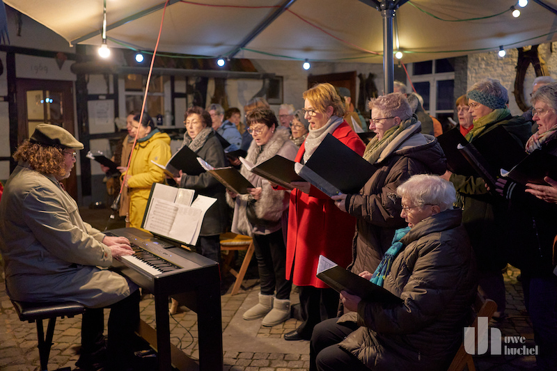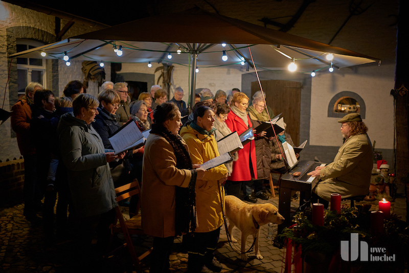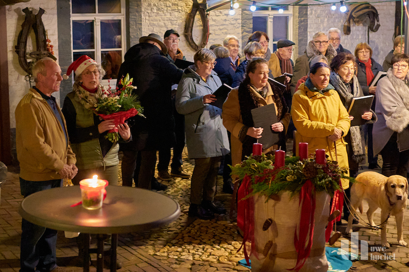 Eine überzeugende Vorstellung präsentierte gestern der Pfarrcäcilienchor Höngen unter der Leitung von Hans Timmermanns auf dem Hof von Bertha und Ed Willms in Höngen. Vorgetragen wurden Lieder aus dem Advent. Beeindruckend war nicht nur der Chorgesang, vielmehr auch die Solis und Gedichtsvorträge. Es waren sehr harmonische Stunden, an die man sich gern erinnert.