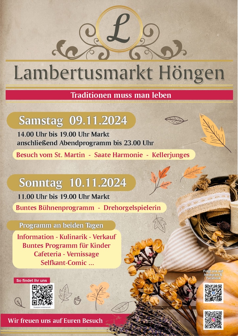 Dieses Jahr findet wieder der bekannte Lambertusmarkt in Selfkant-Höngen statt.