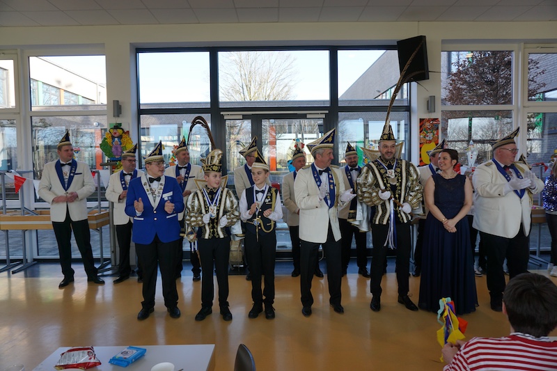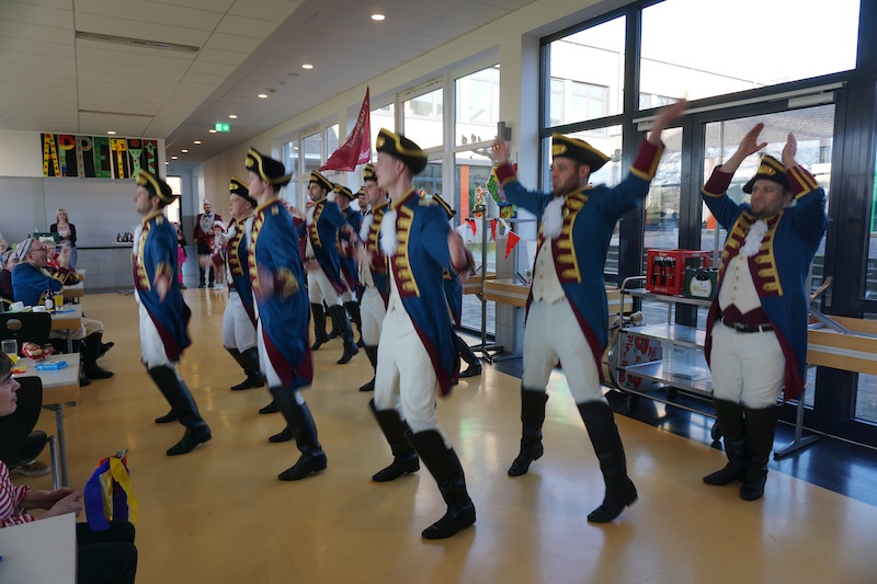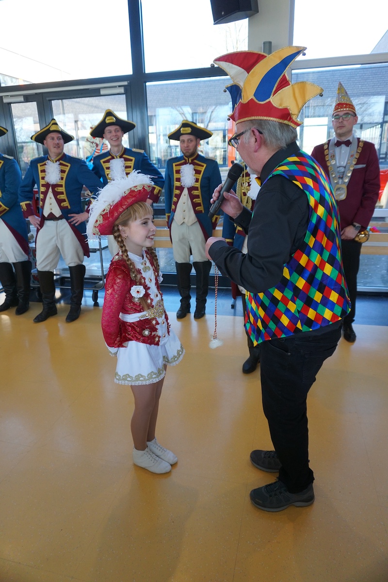 Dann übernahm Sitzungspräsident Arno Vraetz die Regie und führte durch ein abwechslungsreiches Programm. Die Kluser Pappmule aus Haaren marschierten ein mit ihrer Präsidentengarde und dem Elferrat. Sie hatten ihr Tanzmariechen Juliane Mengeler mitgebracht, dass einen tollen Tanz mit zahlreichen akrobatischen Einlagen zeigte. Das Publikum war begeistert. Dann waren die großen Kerle der Präsidentengarde an der Reihe und wussten mit ihrem Gardetanz zu überzeugen.