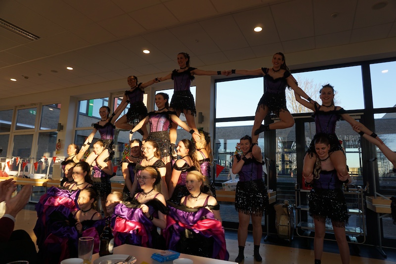 Als letzten Programmpunkt betrat die Showtanzgruppe Dance Revolution aus Haaren die Bühne. Die jungen Frauen zeigten einen rasanten Tanz mit akrobatischen Hebefiguren und als Zugabe gab es noch einen Can-Can. Auch sie wurden mit tosendem Applaus verabschiedet.