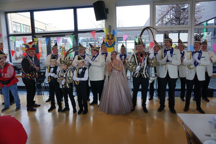Dann übernahm Sitzungspräsident Arno Vraetz die Regie und führte durch ein abwechslungsreiches Programm. Aus Tüddern zogen die Witsemänn ein mit Elferrat, Prinz Christoph I. und Prinzessin Mareen sowie Kinderprinz Kai I. In ihrem Gefolge hatten sie einige Akteure aus ihren Sitzungen dabei, unter anderem die Boygroup „Die Hosenträger“ mit ihrem Playback-Medley, die „Sweety Girls“ und die „Tüddern Girls“.