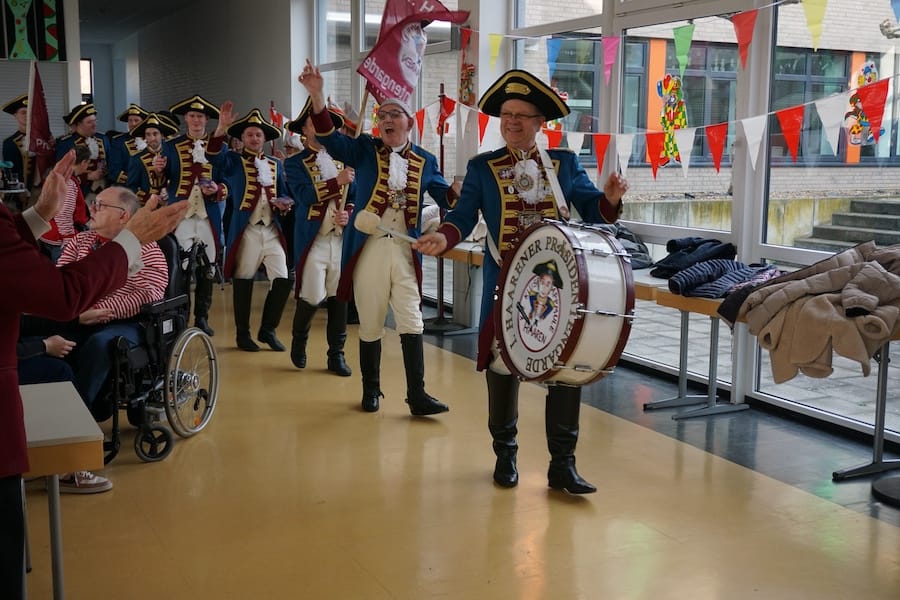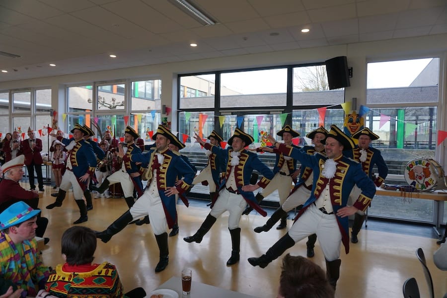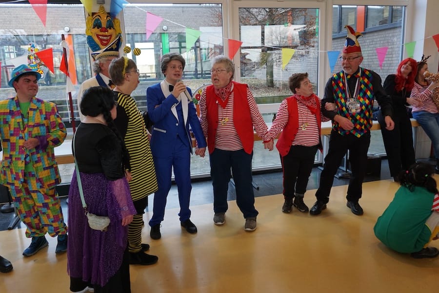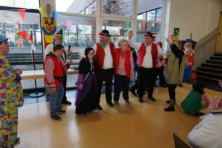 Der Förderverein für Menschen mit geistig-körperlicher Behinderung im Selfkant feierte mit seiner Betreuungsgruppe Karneval. In der bunt geschmückten Mensa der Gesamtschule Gangelt-Selfkant begrüßte der 1. Vorsitzende Georg Meiers die zahlreichen Karnevalisten in ihren fantasievollen Kostümen. Zum Aufwärmen gab es erstmal eine Polonaise. Angeführt von der „Dicken Trumm“ drehte man ein paar Runden durch die Halle. Nachdem sich alle wieder auf der Bühne versammelt hatten, erhielten die Menschen mit Handicap als erste den diesjährigen Hausorden, der später auch allen folgenden Akteuren übereicht wurde.