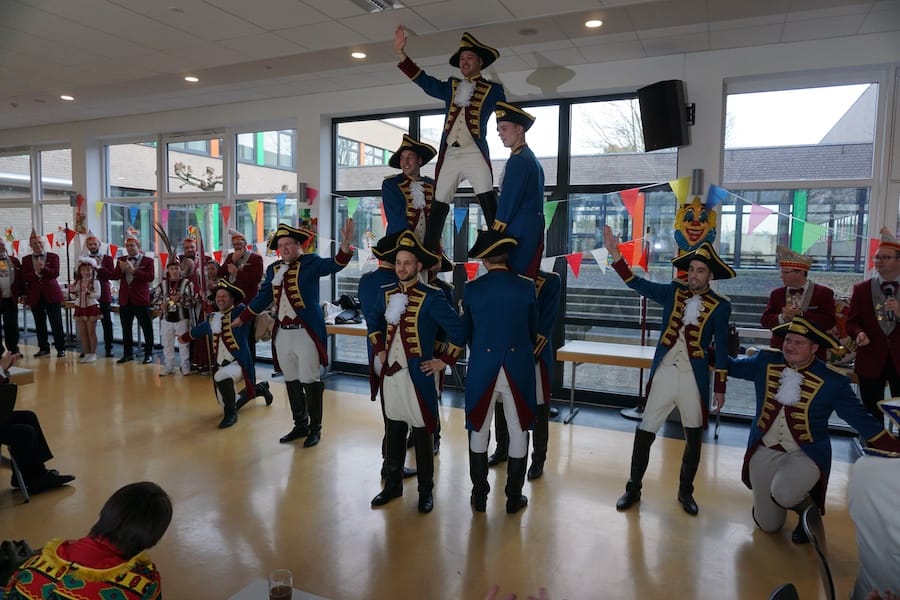Die Kluser Pappmule aus Haaren marschierten ein mit ihrer Präsidentengarde, dem Elferrat und dem Kinderprinzenpaar Leonard I. mit Prinzessin Elisa. Sie hatten ihr Tanzmariechen Juliane Mengeler mitgebracht, dass einen tollen Tanz mit zahlreichen akrobatischen Einlagen zeigte. Das Publikum war begeistert. Dann waren die großen Kerle der Präsidentengarde an der Reihe und wussten mit ihrem Gardetanz zu überzeugen.