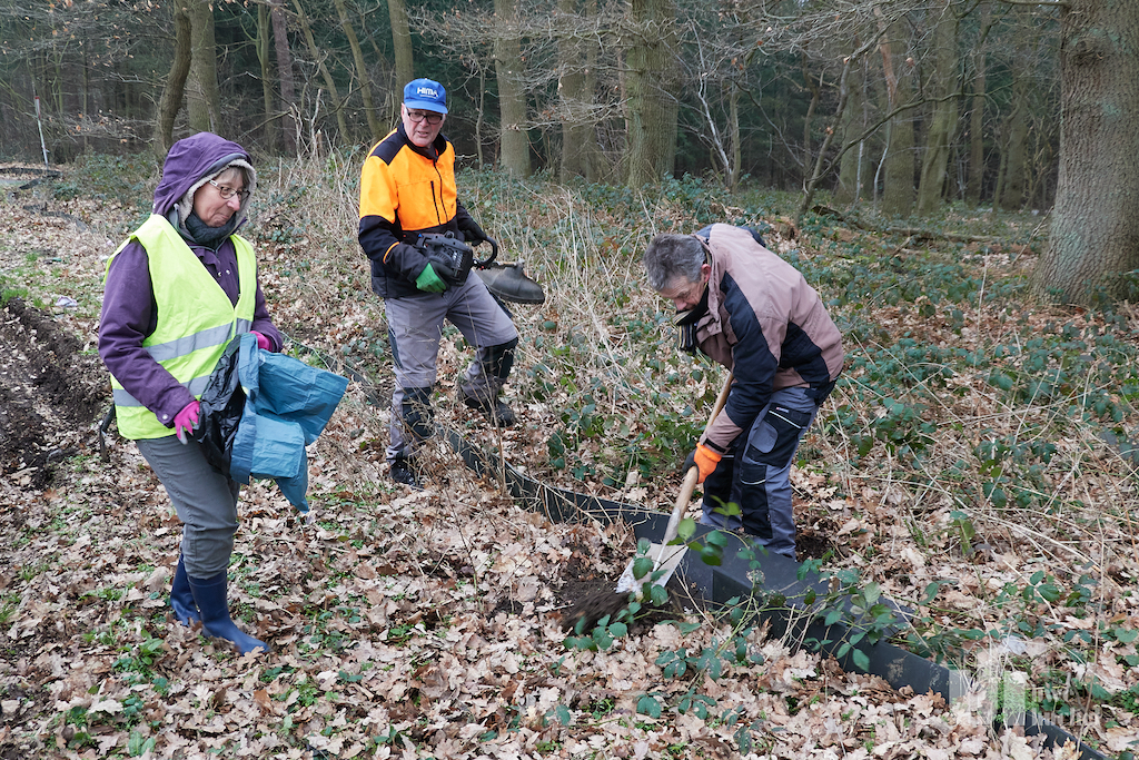 Am 3.3.23 hat eine kleine Gruppe vom Nabu aus dem Selfkant die Zäune kontrolliert und repariert, Fangeimer aufgestellt und gleichzeitig den Müll entlang des Streckenabschnittes entfernt.