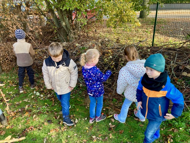 Bei einer guten Idee der Klassenlehrerinnen der drei ersten Klassen der Schule der Begegnung in Birgden konnte der Nabu unterstützen. Eine Zeit lang stand der Igel im Mittelpunkt des Sachunterrichtes. Und am 12. November, einem sonnigen Herbsttag, ging es in die Natur und zwar zum naturnah gestalteten Spiel- und Erlebnisraum Heggeströper. Zusammen mit einem Nabu-Ehrenamtler wurde nicht nur das erstaunlich detaillierte Wissen über Igel zusammengetragen und gefestigt. Es galt auch, fleißig Zweige, Blätter und Moos zu sammeln und die bereits bestehende Benjeshecke igelfreundlich zu erweitern. Mit Eifer und Interesse waren die Erstklässler mit dabei und am Ende waren drei neue Unterschlupfplätze entstanden, die nun Igel zum Winterschlaf einladen.