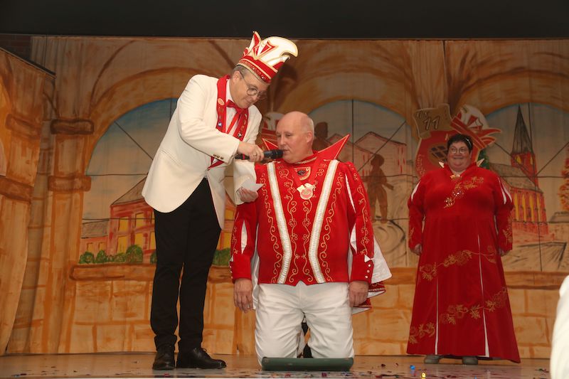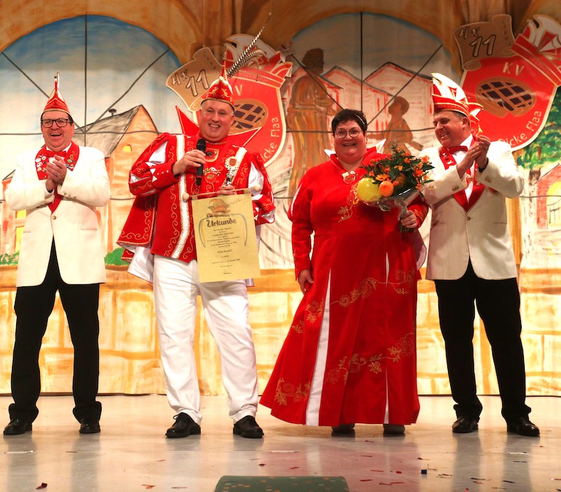 Was für ein krönender Abschluss der großen 4x11 Jahre Jubiläumsemsparty der „Langbrööker Dicke Flaa“ in der proppenvollen Bürgerhalle. Obwohl der Zeiger der Uhr Richtung Geisterstunde tickte erlebten neun Ortsvereine sowie neun befreundete Gastbruderschaften zusammen mit der Ortsbevölkerung eine mehr als stimmungsvolle Proklamation. Das Prinzengeheimnis wurde bis kurz vor der Vorstellung geheim gehalten, sogar die Kinder von Bernd und Susanne (Schütz) waren baff wie viele in der Halle. Die Proklamation war schon vorher ein Riesenspektakel, jedoch die Zeremonie der Krönung vor allem mit Prinzeneid und Prinzenlied setzte diesen Jubiläum die Krone auf.