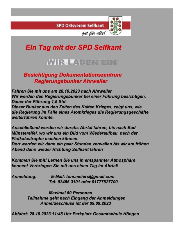 Wir werden den Regierungsbunker bei einer Führung besichtigen. Dauer der Führung 1,5 Std.