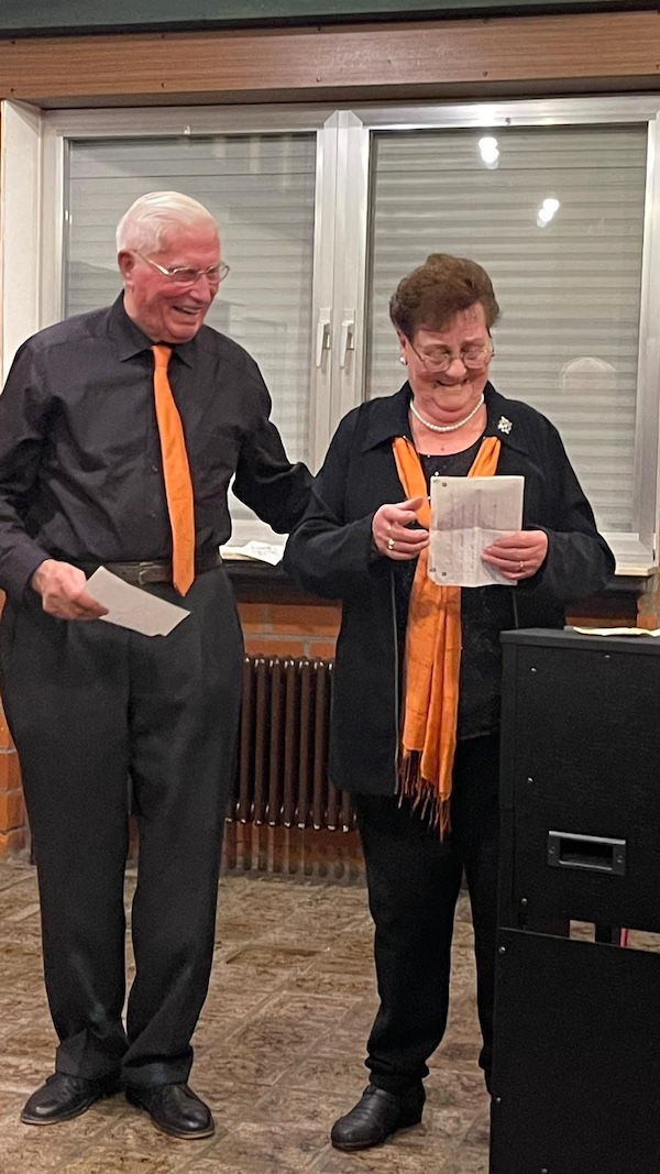Unser Bild zeigt Gerhard, 91 Jahre und Hilde 89 Jahre, seit vielen Jahren eifrige Sänger im Chor.