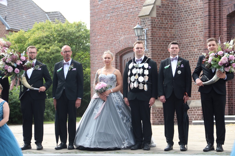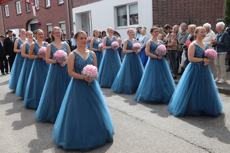 Der Kirmesmontag ließ dann alle Herzen höher schlagen, endlich konnten auch die Ehrendamen so wie das Königspaar einen Farbenschleier über Waldenrath legen.