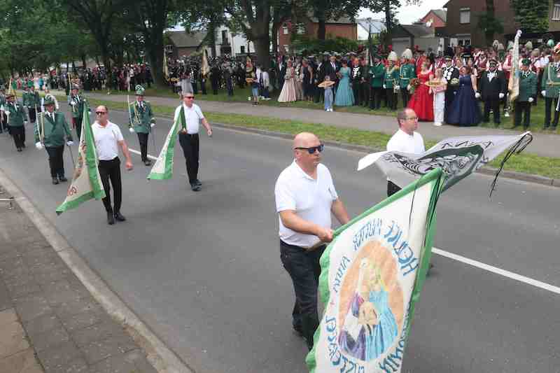 Das erste Schützenfest im Dekanat Gangelt/Selfkant erlebte lebendige Brauchtumspflege in allen Facetten. Am Sonntag pilgerten die Zuschauer zum großen Festzug mit abschließender Parade. Neben den 21 angeschlossenen Bruderschaften im Dekanat Gangelt-Selfkant wurden mit den Bruderschaften „Unserer Lieben Frau“ Erkelenz, Bruderschaft Rur-Kempen, St. Sebastianus Willich und St. Rosa aus Sittard vier Gastbruderschaften begrüßt. Zu den 25 Bruderschaften gesellten sich 26! Musizierende Vereine.