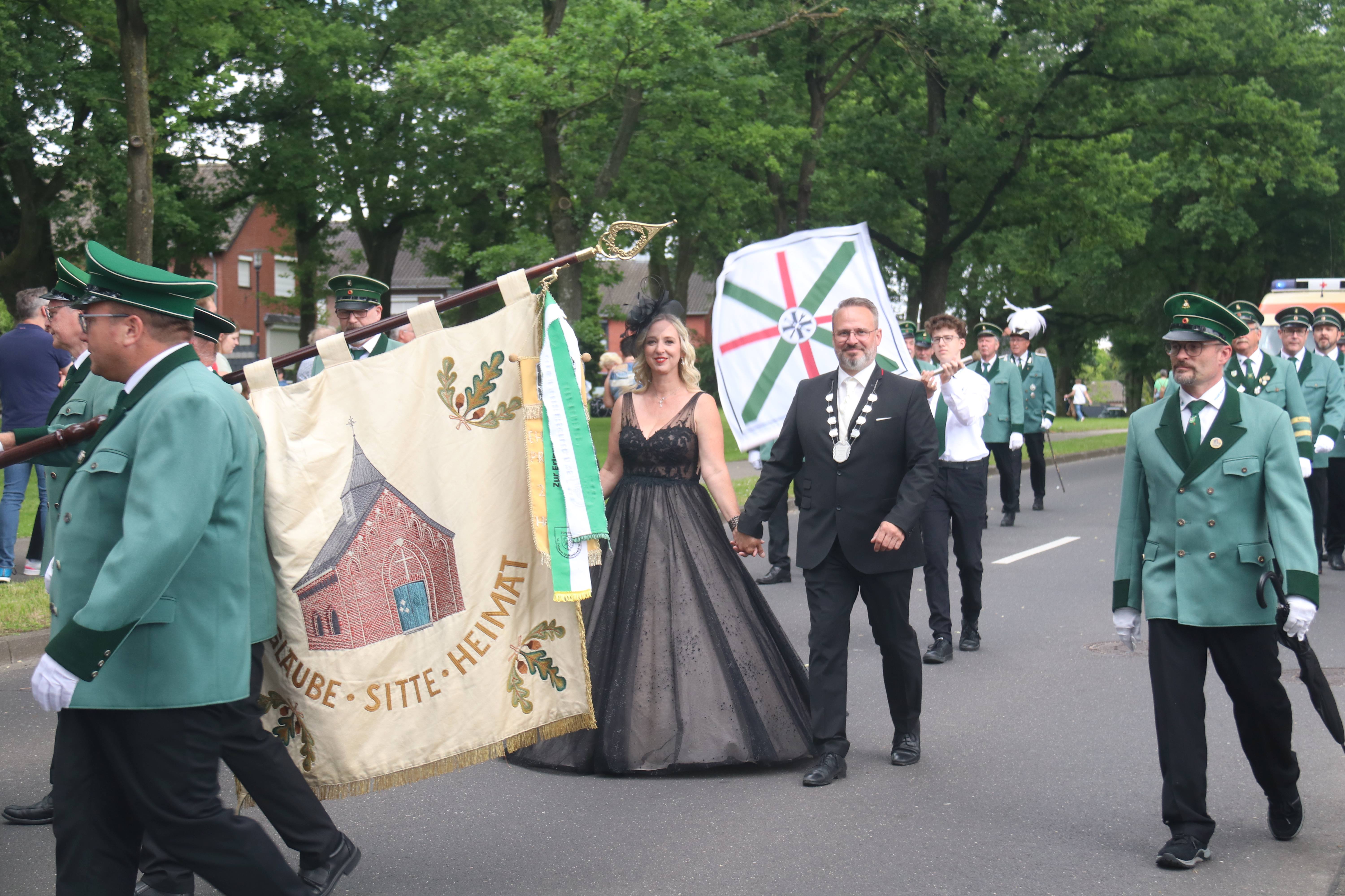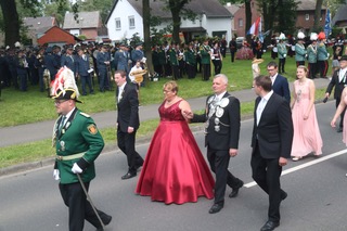 „Bitte Aufstellung nehmen, der General kommt“ verkündete Alfons Krings am Ehrenwagen. Die heimische St. Hubertus Bruderschaft mit ihrem Königspaar Nico Dahlmanns und Gina Goertz strahlten wie das Kaiserpaar Manfred und Gaby Dahlmanns um die Wette, auf und vor der Festwiese erlebte das Brauchtum neue Superlative.
