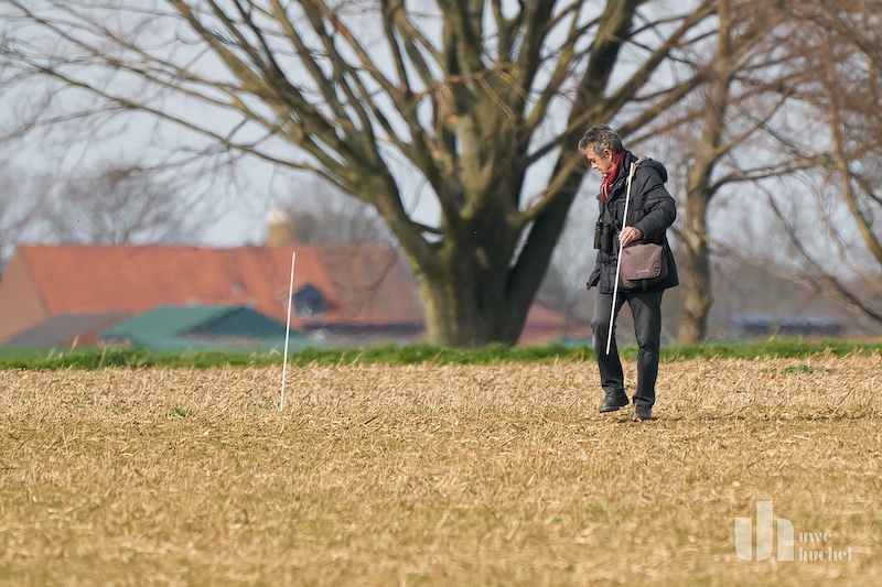 Begonnen hat die erfolgreiche Zusammenarbeit mit Herrn Dreißen in Sachen Kiebitzschutz vor 2 Jahren, als er auf seinem Feld erstmals der Einrichtung einer Kiebitzschutzinsel zustimmte. Der gute Bruterfolg führte im vergangenen Jahr dazu, dass dort sogar mindestens 5 Paare erfolgreich brüten konnten. Entscheidend für diesen großartigen Erfolg war die Vereinbarung, mit der Feldbearbeitung und anschließender Maisaussaat bis Anfang Mai zu warten, da in der Regel das eigentliche Brutgeschäft dann beendet ist.