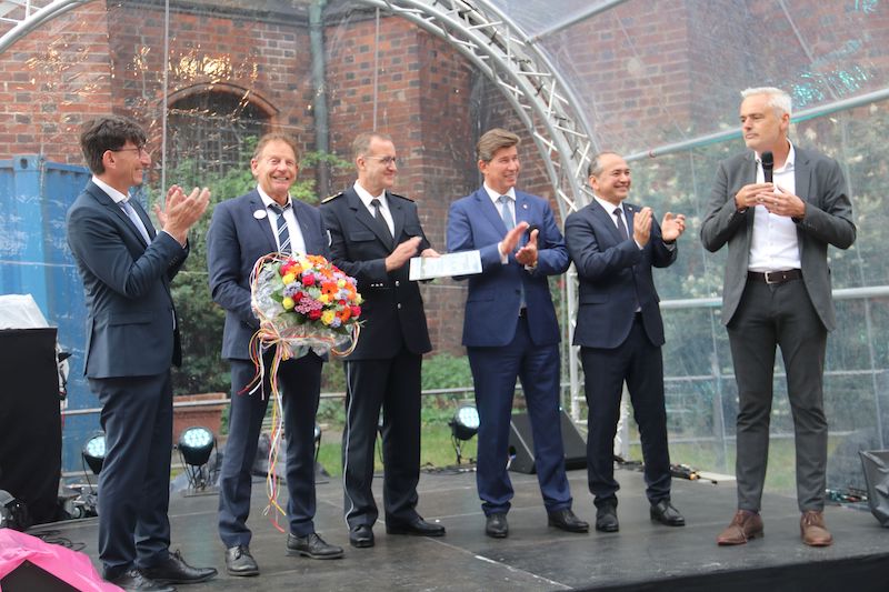 Eine Attraktion des Deutschlandfestes mit über 500.000 Besuchern war auch der Festzug vom Stand des Zipfelbundes zum Stand Bundeslandes Hessen mit seiner Bühne zur Verleihung des Zipfelpreises. Der Spielmannszug Edelweiß spielte sich und den Festzug den Weg frei, auch hier mehr als echte Werbung für den Selfkant. Der Zipfelpreis wurde in diesem Jahr an den Hilfs- und Unterstützungsfond der Polizei (HUPF) in Schleswig-Holstein an den Vorsitzenden Andreas Breitner durch die vier Zipfelbürgermeister verliehen, eine beeindruckende Laudaitio hielt Landespolizeipräsident Wilksen vom Land Schleswig-Holstein.