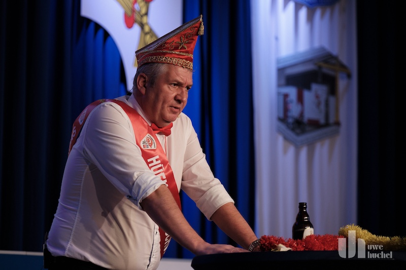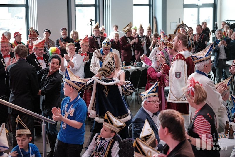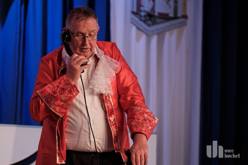 Die Kleischötte präsentierten Rabatz. Und sie heizten in der Westzipfelhhalle so richtig ein. Es wurde mitgesungen, geschunkelt und getanzt. Der nächste Höhepunkt war der Besuch des britischen Königspaares mit ihrem Butler James. Diese wurden durch das Driegeschaar Arno Conen, Willi Houben und Harald Zaunbrecher verkörpert. Der britische Protokollchef hatte die Majestäten jedoch falsch informiert. Sie glaubten permanent in Höngen zu sein. Na ja, kann passieren bei den ganzen Terminen.
