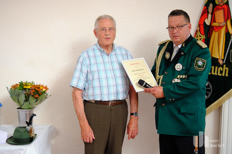 Nach der Hl Messe und der Kranzniederlegung war der Patronatstag Anlass Ehrungen vorzunehmen. Zunächst wurde Hans Schlebusch für 75 Jahre in der Bruderschaft geehrt.