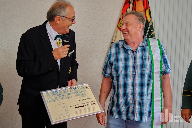 Das Schlbrucher Urgestein Claus Kuckartz wurde mit dem Schulterband zum St. Sebastianus Ehrenkreuz geehrt, es kann an Schützenschwestern und Schützenbrüder verliehen werden, die sich in überzeugender Weise um das Schützenwesen verdient gemacht haben. Besonderer Wert ist auf die Feststellung christlicher Wert- und Lebensmaßstäbe zu legen.