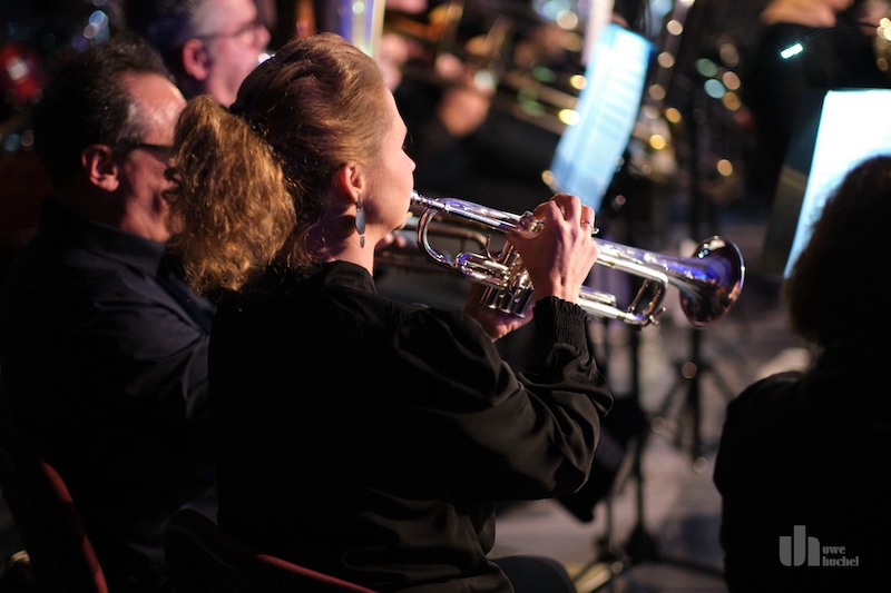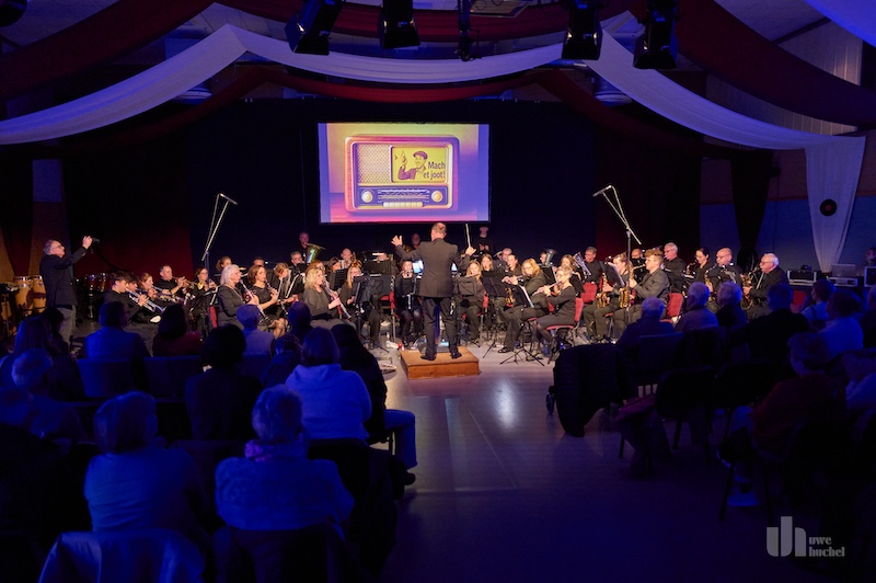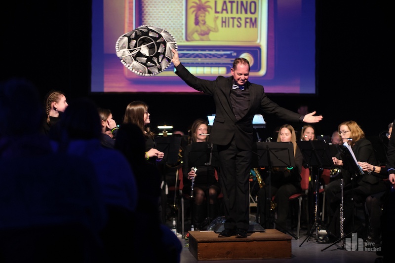 Vor dem letzten Stück gab es Blumen für den Dirigenten, dessen Programm eine echte Herausforderung für die Musiker war, für Sarah Horrichs aus Langbroich (eine fantastische Aushilfe an der ersten Klarinette) Uschi Lersch (für das kurzfristige Nähen der Tücher) und last but not least an den Radiomoderator Josch Hamerlers für seine tollen Ideen.