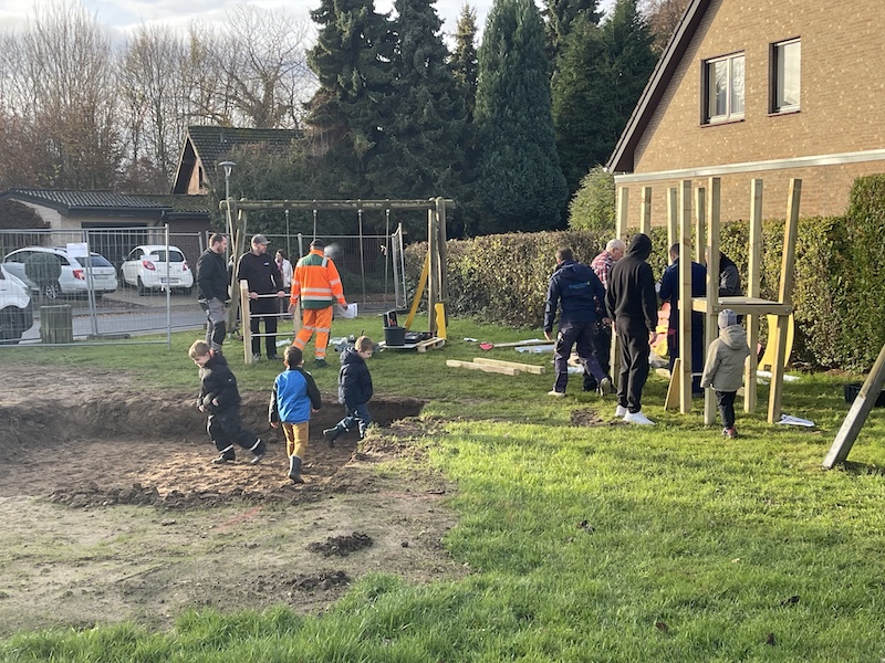 Im Blumental in Tüddern ist ein erster wichtiger Schritt gemacht: Der Spielplatz nimmt Gestalt an und bietet Kindern bereits jetzt einen Ort zum gemeinsamen Spielen, Klettern und Toben – ein Platz, an dem viele schöne Stunden entstehen können.