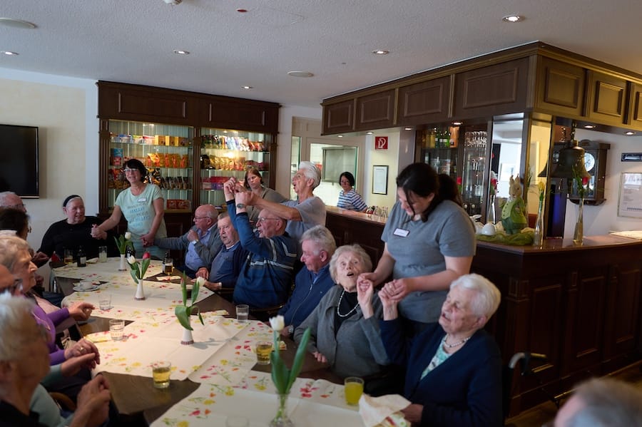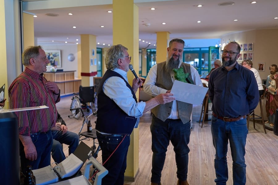 Gestern hatte Jakob Paulzen extra ein Lied anlässlich des Pattronatstages St. Josef komponiert. Gemeinsam mit den Bewohnern sangen sie: „Josef lieber Josef mein und wir alle im Josefheim feiern jetzt bei Kuchen und Wein, so sollte es auch immer wieder sein.“