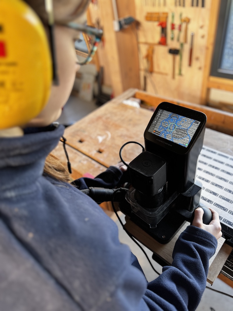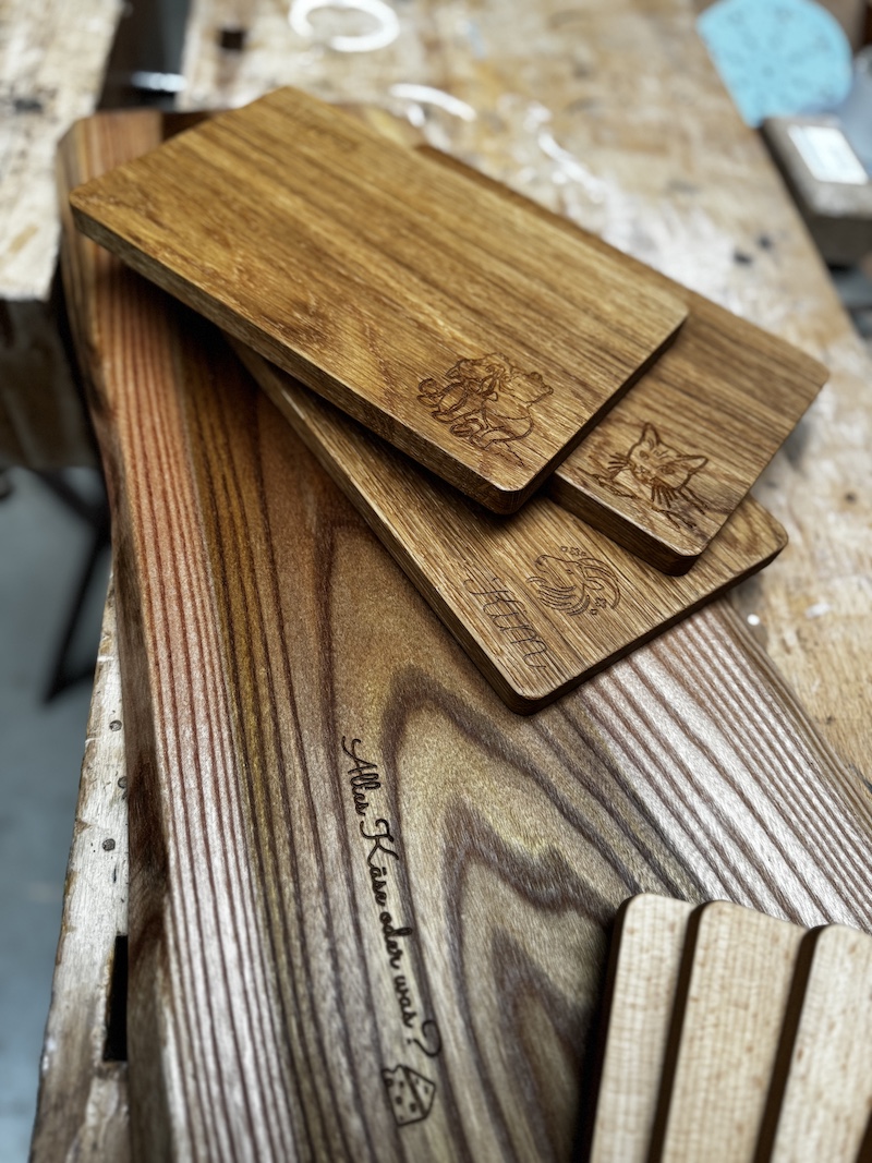 Die vorbereiteten Eiche-Brettchen (Maße: 250 × 150 × 15 mm) können mit der modernen Shaper Origin, einer digitalen Oberfräse, individuell graviert werden. Namen, weihnachtliche Motive oder kleine Botschaften: Der Fantasie sind kaum Grenzen gesetzt. Anschließend schleifen und ölen die Teilnehmenden ihre Brettchen selbst – ein Erlebnis, das Kindern wie Erwachsenen viel Freude bereitet.