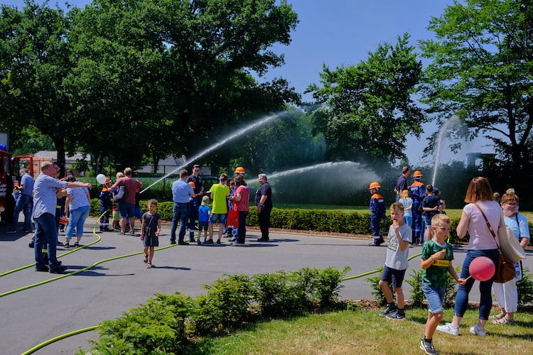 Vereine unterstützen Vereine – unter diesem Motto präsentierte sich an diesem Wochenende die Freiwillige Feuerwehr Selfkant mit einem Fahrzeug und die Jugendfeuerwehr begeisterte die jungen Besucher mit einer Vorführung. Außerdem gingen der Erlös aus dem Verkauf von Getränken, Bratwürsten und Kaffee vom Espressomobil der Kreissparkasse Heinsberg an den SC Selfkant, die Initiative Ukraine Hilfe „Das Herz hilft!“ und die Interessengemeinschaft Brauchtumspflege Selfkant. Zur musikalischen Unterhaltung spielten der Trommler-, Pfeifer- und Fanfarenkorps Höngen und der Spielmannszug Saeffelen auf.
