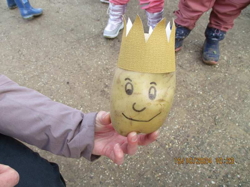 Ausgestattet mit Matschhosen und Gummistiefel spazierten wir auf’s Feld. Die Herausforderung durch Matschwege und sumpfige Felder führte uns zum Kartoffelfeld.