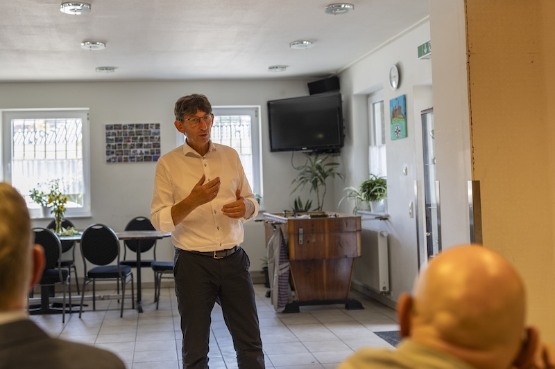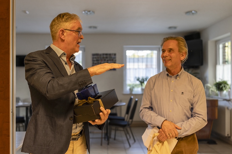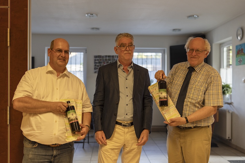 „Grenzen gehören ins Museum, so wie wir sie schon dort hineingepackt haben“, betonte Paul Beckers vor dem abschießenden Abendessen, überreichte an Guus Janssen und Erich Hacken als Dank für ihre Führungen den allseits bekannten Zipfeltrunk, bevor der Vorsitzende des Pater Sangerskring, Maaseik, Jos Henckens, im Namen der beiden Gastvereine Dankesworte an den diesjährigen Veranstalter richtete, ein Geschenk überreichte und seine Mundart-Rede abschloss: „Selfkant – Zitterd – Mezeik“ das sind „Drie Eeke“ in der heimatlichen, grenzüberschreitenden engen Verbundenheit und lud zum nächsten Treffen in 2025 nach Maaseik/B. ein.
