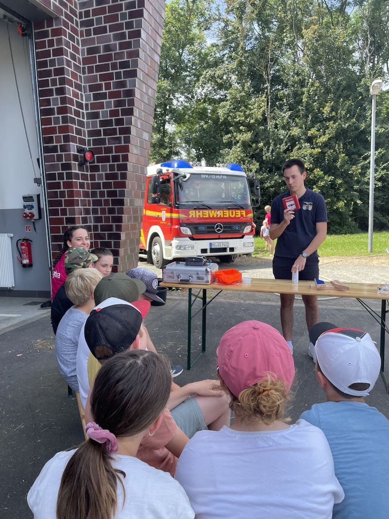 Der Tag stand ganz im Zeichen der Feuerwehr und bot den jungen Teilnehmern die Möglichkeit, viel Wissenswertes über die Grundlagen der Brandbekämpfung und den Umgang mit Notfällen zu lernen. Die Feuerwehrleute erklärten den Kindern, wie man einen Notruf richtig absetzt und welche Informationen dabei besonders wichtig sind. Auch das richtige Verhalten bei einem piepsenden Rauchmelder wurde intensiv besprochen.