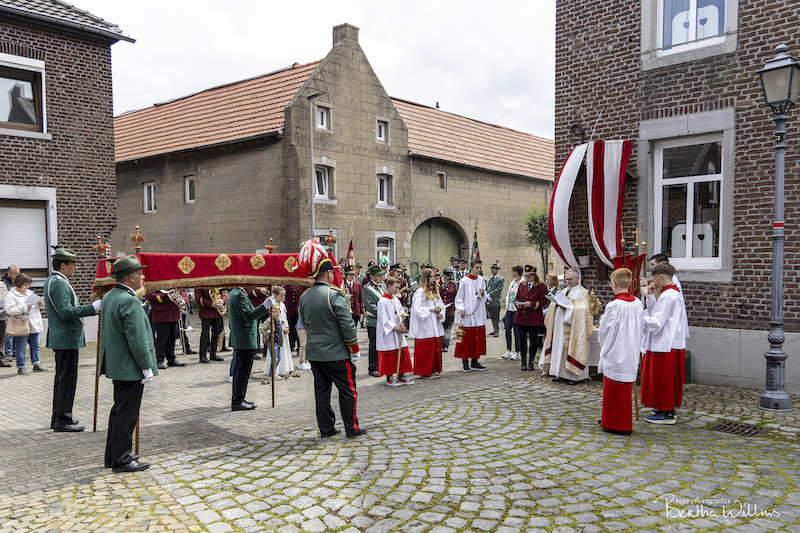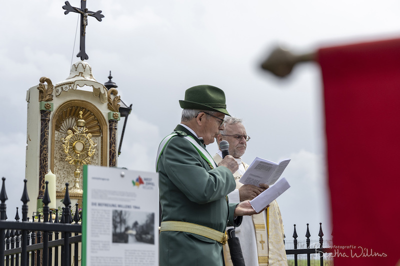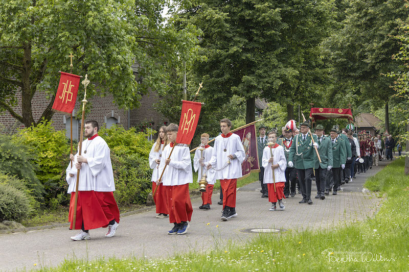 Alle zwei Jahre im Wechsel mit Tüddern findet die Fronleichnam Prozession statt. Dieses Jahr in Millen. Anschließend an der Heiligen Messe zog die Prozession mit Messdienern, Schützen aus Millen und Tüddern, Kommunionkinder, Pastor Guido Helwig, der Instrumental Verein Tüddern, und gefolgt von den Gemeinde Mittgliedern. An allen drei Altären wurde dass Tantum Ergo gesungen und der Segen erteilt. Da uns das Wetter gut gesonnen war wurde der Schluss Segen spontan am Schützenheim an einem improvisierten Altar gegeben. Hier war dann auch anschließend der gemütliche Teil, der mit einer Suppe und kühlen Getränken bestens versorgt wurde.