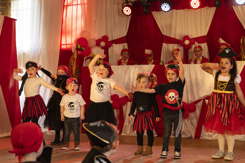 Am vergangenen Sonntag trafen sich Groß und Klein zur Kindersitzung in der festlich geschmückten Schützenhalle zu Höngen. Neben den arrivierten Karnevalsgesellschaften der Witsemän aus Tüddern und der Kleischötte aus Süsterseel, die mit ihrem Nachwuchs auftraten und jeweils beste Stimmung machten, durfte Kindersitzungspräsidentin Ida Douven auch Gäste aus dem gesamten Selfkant begrüßen, z.B. die Tanzgarde Mission Dancing und die Sonnenblumen und ihre Gärtner, jeweils aus Saeffelen und die Piraten des Schalbrucher Kindergartens. Es wurden atemberaubende Tänze gezeigt, Aaron Conen und Ida Douven brachten mit ihren Büttenreden die Halle zum Beben und auch die kleinsten Jekken vom Familienzentrum St. Lambertus Höngen gaben sich die Ehre. Natürlich waren auch die hiesigen Diamond-Tanzgruppen vertreten, die mit den Diamond Babes, Diamond Minis und Diamond Kids gleich drei Sitzungspunkte bildeten. Zum Schluß waren sich alle einig, dass Höngens Nachwuchs Karneval zu feiern weiß.