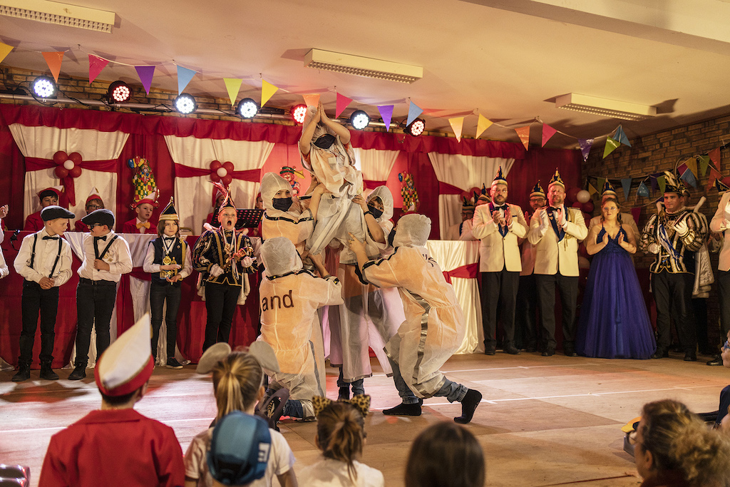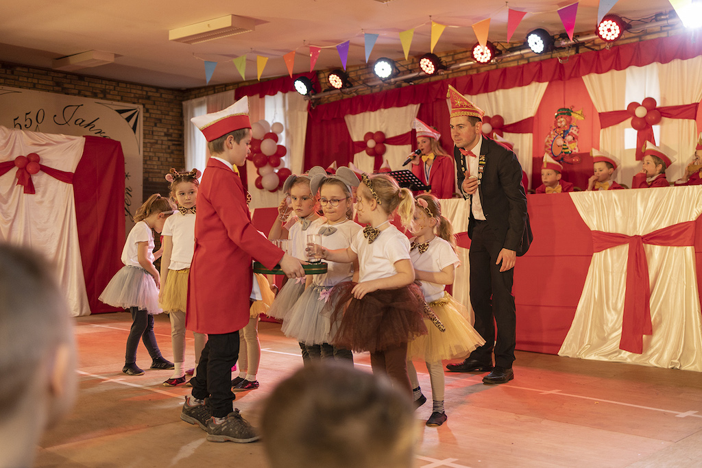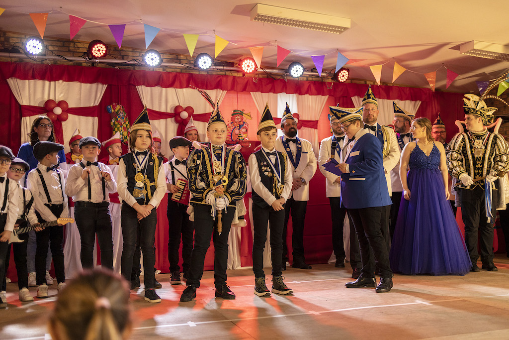 Am vergangenen Sonntag trafen sich Groß und Klein zur Kindersitzung in der festlich geschmückten Schützenhalle zu Höngen. Neben den arrivierten Karnevalsgesellschaften der Witsemän aus Tüddern und der Kleischötte aus Süsterseel, die jeweils mit ihrem Nachwuchs auftraten, durfte Kindersitzungspräsidentin Fenja Douven auch Gäste aus dem gesamten Selfkant begrüßen, z.B. die Tanzgarde aus Saeffelen. Es wurden atemberaubende Tänze gezeigt, Aaron Conen und Ida Douven brachten mit ihren Büttenreden die Halle zum beben und auch die kleinsten Jekken vom Familienzentrum St. Lambertus Höngen gaben sich die Ehre. Ein weiterer Höhepunkt bildeten die Sieningspänz Kids mit dem Eskimotanz. Natürlich waren auch die hiesigen Diamond-Tanzgruppen vertreten, die mit den Diamond Babes, Diamond Minis und Diamond Kids gleich drei Sitzungspunkte bildeten. Als das Ende der Sitzung erreicht war, verkündete Fenja Douven, dass sie das Amt als Kinderpräsidenten nach 5-järiger Amtszeit an ihre Schwester Ida Douven weitergeben werden. Es war der emotionale Abschluss einer großartigen Kindersitzung.