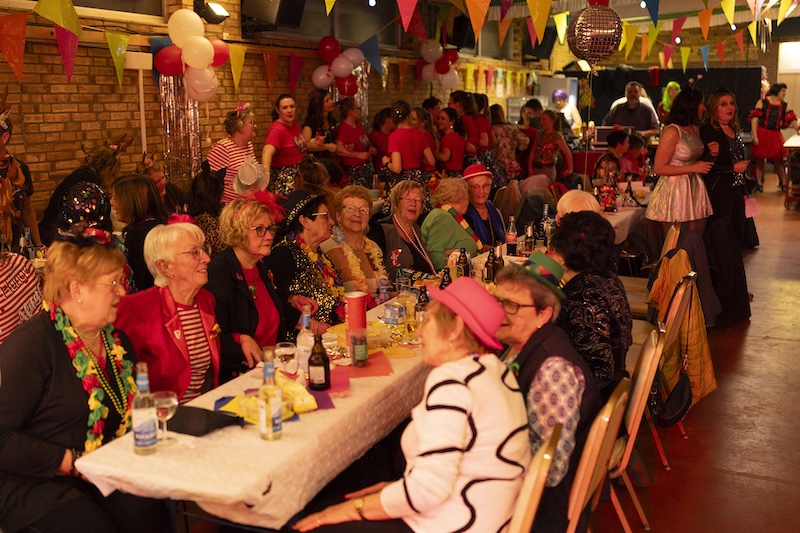 Die Vorstandsmädels der Frauengemeinschaft brachten nochmals richtig Stimmung mit ihrem Tanz „Die jecken Kühe“ und sorgten in ihren noch jeckeren Kuh-Kostümen für bebende Lachmuskeln und Begeisterung. Die Showtanzgruppe Goldies ließen daraufhin die Bühne unter ihrem Motto „Konfetti im Herzen“ nochmal so richtig funkeln und begeisterte mit einem tollen Auftritt. Ein weiteres Sketch- Highlight hier zum Thema „Szenen einer Ehe“ boten die Schafhausener Importschlager Tanja Vogel sowie Mechtilde Kneko und zeigten, was bei ihnen zur nachtschlafenden Zeit im Ehebett so los ist … Daran anschließend boten die Mädels der „Tanzgruppe Höngen/Saeffelen“ eine mehr als amüsante Mischung aus Sketcheinlage und Tanz zum Thema „aus dem Alltag eines Tanzmariechens“. Kekse und Krümel gab‘s im Überfluss. Mit den Thekenmädels ging es über die Grenze nach Holland. Die Showtanzgruppe sorgte mit niederländischen Liedjes für Stimmung in der Schützenhalle. Der altbekannte und von der Höngener Bühne nicht mehr wegzudenkende „Tanz- und Laberverein“ zeigte dann, wie Frauen einen geselligen Mädelsabend inklusive dem Schauen einer Kochshow in ein