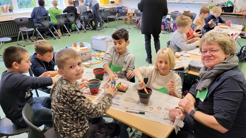 Während der Projektwoche, die 14 ausgebildete Hospizbegleiter in der „Schule der Begegnung“ in Birgden durchführten, erhielten Kinder Antworten auf all ihre Fragen, Gedanken und Sorgen zu den einzelnen Themen. Jeder Tag der Woche stand unter einem anderen Motto. Die Themen „Werden und Vergehen“, „Krankheit und Leid“, „Sterben und Tod“, „Vom Traurig sein“ und „Trost und trösten“ wurden sensibel und kindgerecht auf unterschiedlichste Weise bearbeitet. Es wurde gemeinsam gesungen, gemalt, pantomimisch gespielt, getanzt, geschrieben und erzählt und zugehört. Ursula Schever und Karen Stevens, die Klassenlehrerinnen der Viertklässler, waren während der ganzen Zeit anwesend und freuten sich am Ende über eine gut gelungene Woche. „Jeder einzelne Tag war toll vorbereitet und sehr gut strukturiert. Die Hospizbegleiter waren sehr einfühlsam und hatten für jedes Kind ein Ohr. Die Kinder haben sich toll beteiligt und waren neugierig und interessiert. Einige Kinder haben sich so geöffnet, dass es mir eine große Freude war, das mit zu erleben,“ sagt U. Schever.