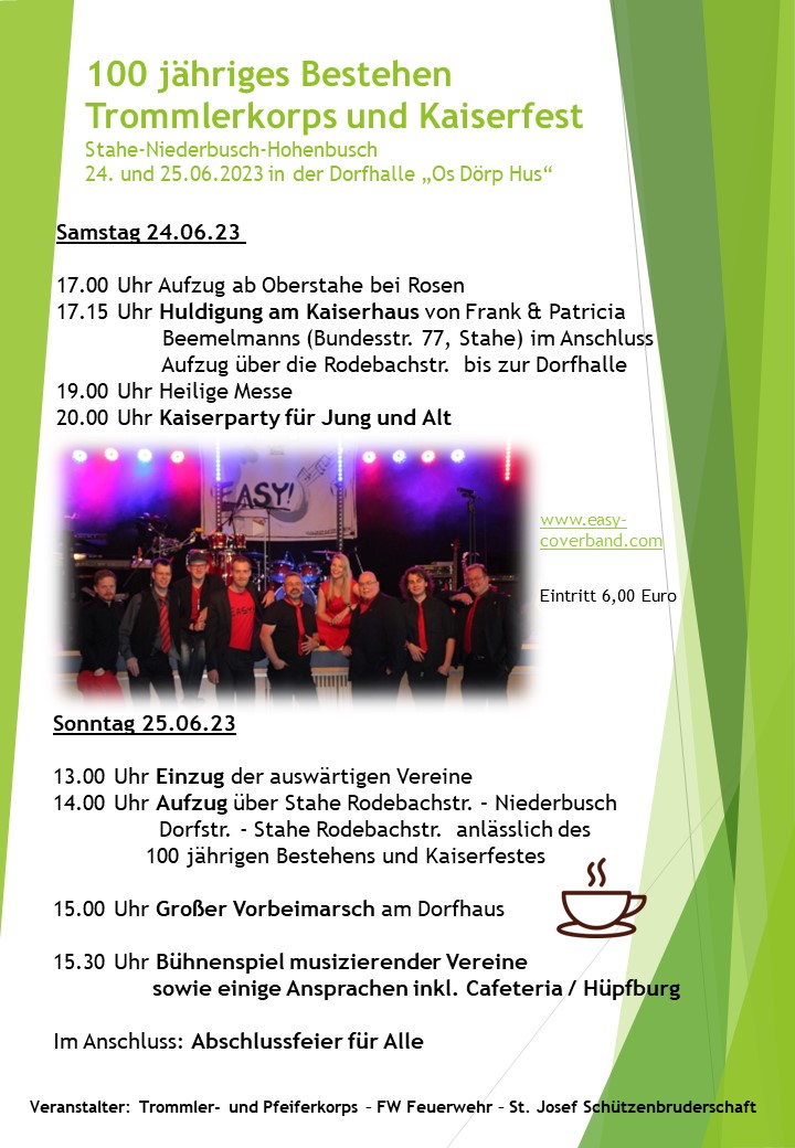 Programm des Kaiserfestes und 100 jährigen Bestehens vom Trommlerkorps Stahe – Niederbusch.