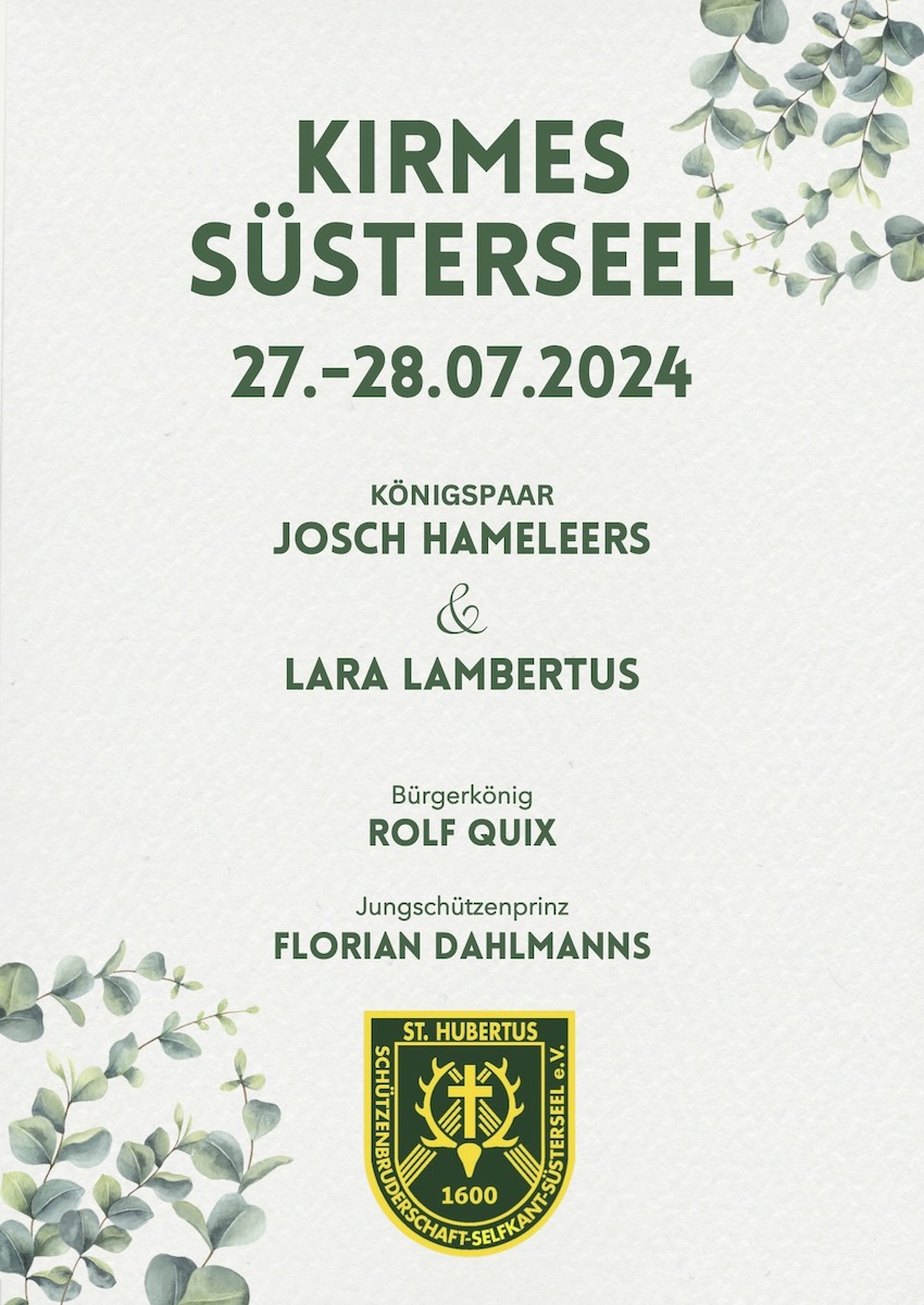 Die Schützenbruderschaft St.Hubertus Süsterseel freut sich auf Ihren Besuch bei der Anna Kirmes und über zahlreiches Publikum bei den Umzügen am Samstag und Sonntag.