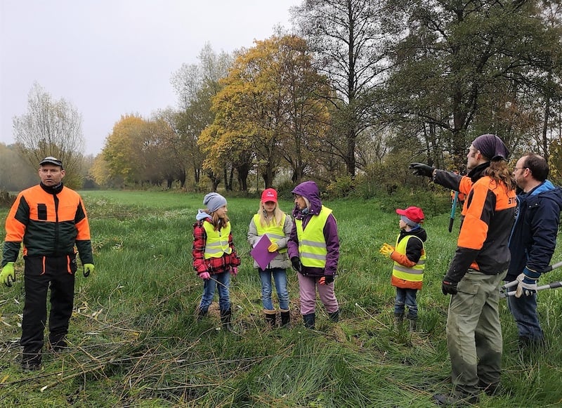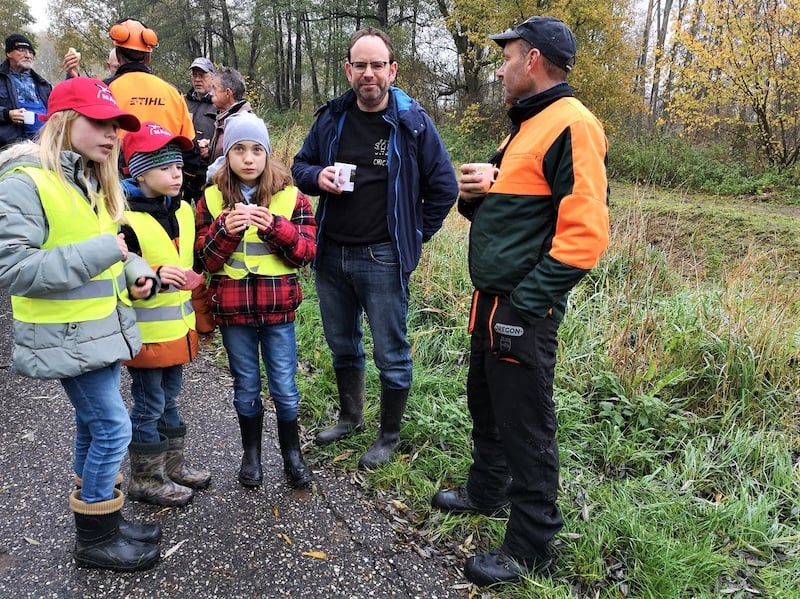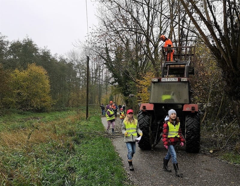 19.11.22. Samstag Vormittag. Das naßkalte Wetter konnte 16 Nabumitglieder und ihre Helfer nicht abhalten die Kopfweidenpflege fortzuführen. Insgesamt wurden 23 Kopfweiden zurück geschnitten, um so ein Auseinanderbrechen der Weiden zu verhindern und den Neuaustrieb im Frühling sowie das Dickenwachstum des Stammes zu fördern. Insgesamt wurden 56 Arbeitsstunden geleistet. Und es gab Unterstützung von der Nabujugend. Die Kinder haben mit der Astschere und einer Handsäge selbst eine Kopfweide gepflegt. Von Thomas Henkens und Theo Reinartz erfuhren sie viel Wissenswertes über die Kopfweiden und die Notwendigkeit ihrer Pflege.
