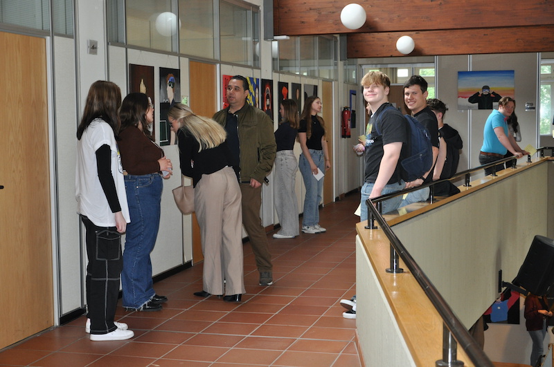 Während der Eröffnungsrede würdigte Frau Anja Hinz, Kunstlehrerin, die außergewöhnliche Hingabe und das Engagement der Schülerinnen und Schüler. „Es ist erstaunlich zu sehen, wie sich ihre künstlerischen Fähigkeiten und ihr Selbstbewusstsein in diesen sechs Monaten entwickelt haben“, sagte Anja Hinz. Besonderer Dank ging an Herrn Willems und Frau Laumen, die zum dritten Mal in Folge die öffentliche Ausstellung im Rathaus ermöglichten.