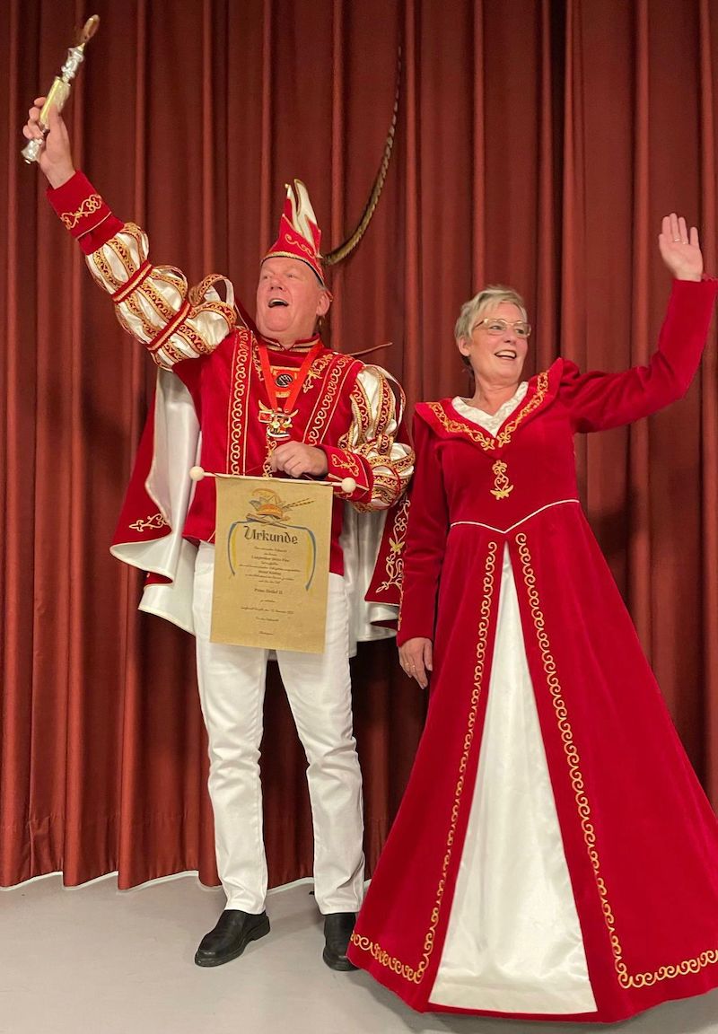 Der Abend endete mit einer feierlichen Zeremonie, bei der Detlef II. und Waltraud offiziell zu den neuen Regenten der Karnevalssession ernannt wurden. Außerdem wurde das neue Prinzenkostüm des Vereins gezeigt. Die beiden strahlten vor Freude und wurden von den Vereinsmitgliedern herzlich begrüßt.