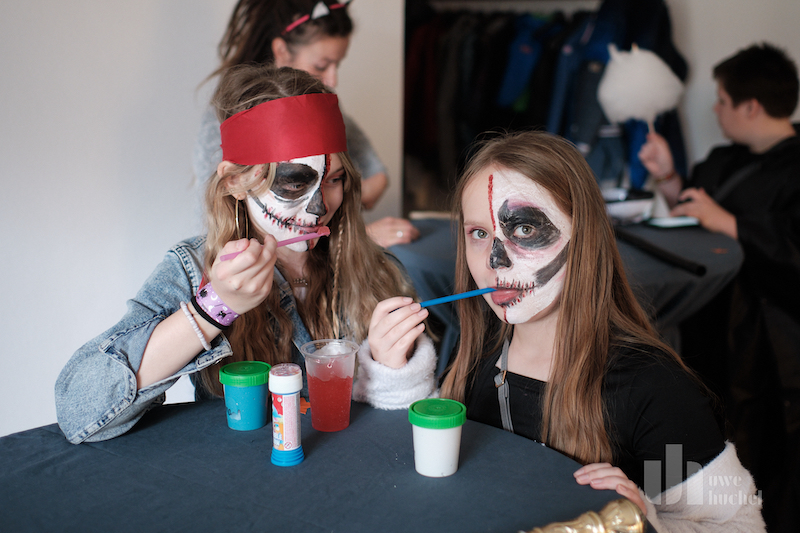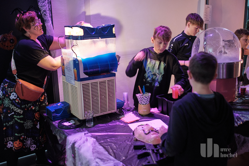 Halloween in Saeffelen - viele Angebote für Kinder statt, Schleimstation, Grusel-Enten-Angeln, eklige Köstlichkeiten, Tattoos, Bastelaktionen, Malwettbewerb, Fotobox und eine Hexe mit vielen Ballons sorgt für Abwechslung. Der Gruseltunnel wurde erstmals im Außengelände aufgebaut, größer und gruseliger.