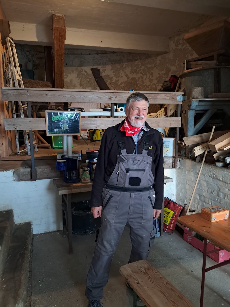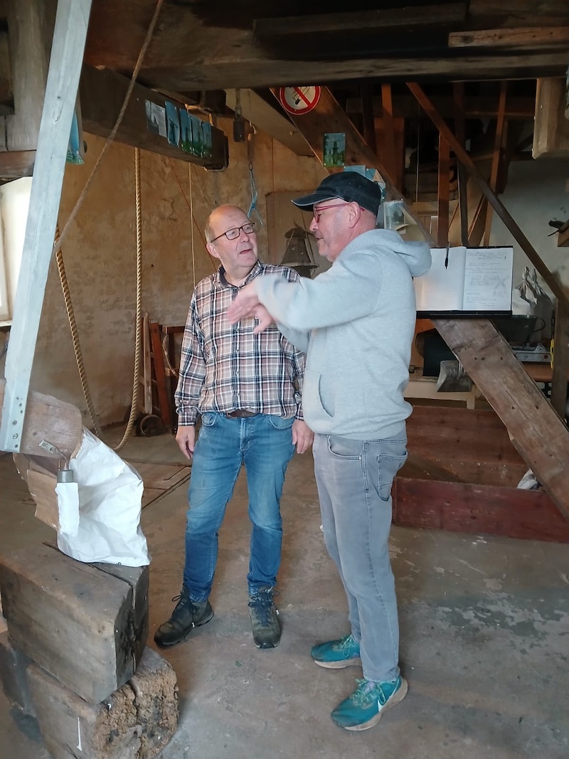Außerhalb der jährlichen Besuche haben wir derzeit Benoît Lauriou, den Bürgermeister von Pont-Croix, im Selfkant zu Gast. Als Bürgermeister wird er morgen bei der Verabschiedung des jetzigen Bürgermeisters Norbert Reyans dabei sein und unseren neuen Bürgermeister- Gerard Küsters kennenlernen und-hoffentlich- für die Partnerschaft motivieren können. Als Müller war er heute einer Einladung unseres Vorstandsmitglieds, zugleich selber Müller und Vorstandsmitglied im Verein Historische Mühlen im SELFKANT e.V., Emil Schreiber gefolgt.