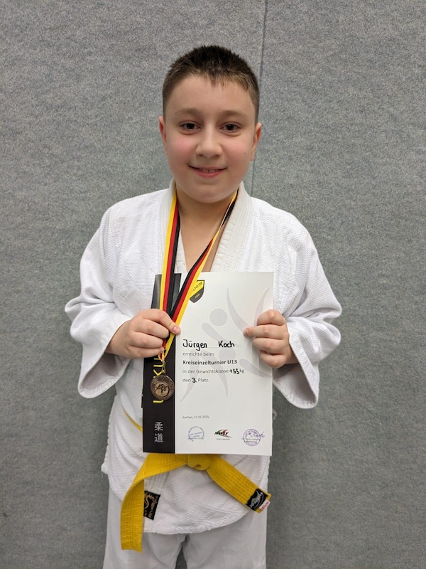 Bei seiner ersten Wettkampfteilnahme erkämpfte Jürgen Koch, beim einem Kreisturnier welches ebenfalls in Aachen – Kornelimünster ausgetragen wurde in der Jugend U 13 den dritten Podestplatz in der Gewichtsklasse plus 55 kg.