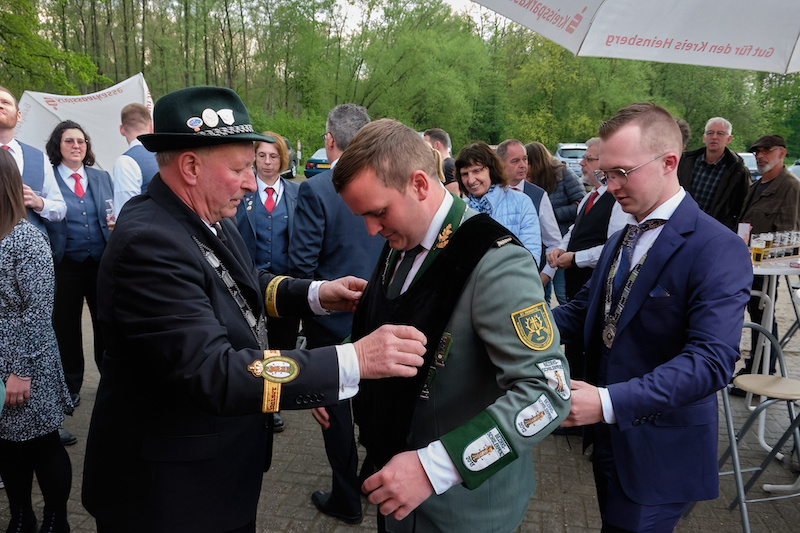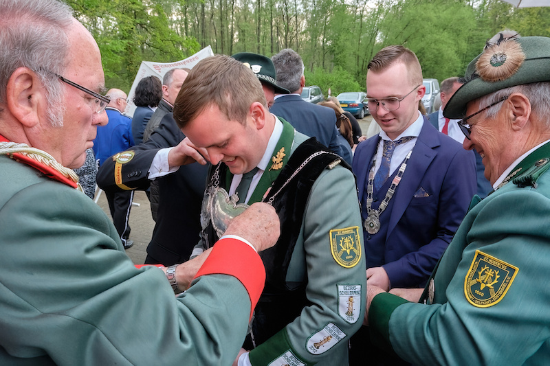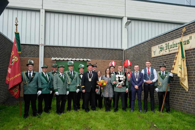 Nico Dahlmanns wurde heute nach einem spannenden Wettkampf mit turbulenten Wettereinlagen Schützenkönig der Sankt Hubertus Schützenbruderschaft Süsterseel. Mit 168 Schuss eiferte er seinem Vater nach, der Kaiser ist. Zusammen mit Gina Goerts wird Nico nun die Süsterseeler Schützen repräsentieren. Bürgerkönig wurde Jacob Rombey mit 143 Schuss, Jungschützenprinz wurde Diori Drenth.
