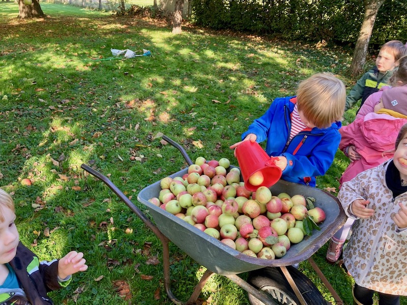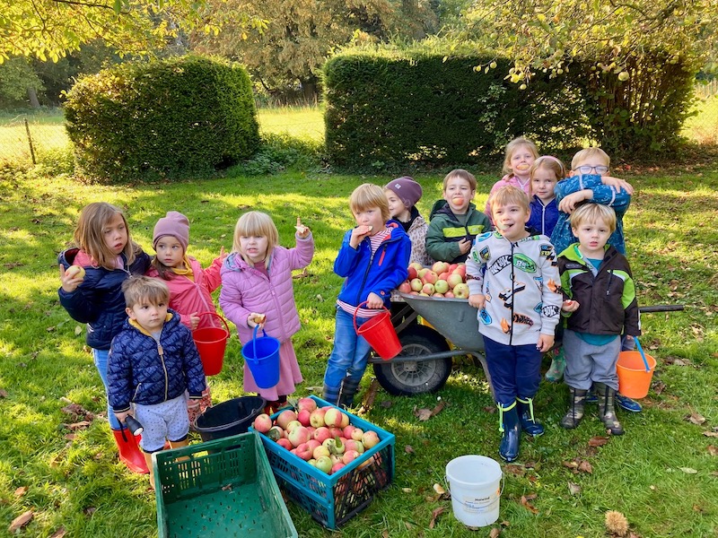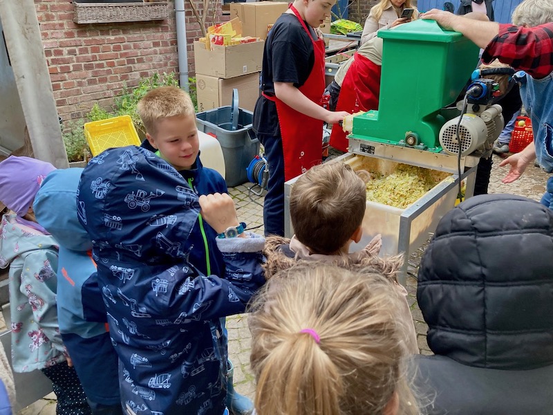 In den Tagen vor der Pressaktion hatten sowohl Kinder aus der Kita St. Urbanus als auch Erstklässler der Birgdener Grundschule in der Wiese von Herbert Scheufen fleißig und mit sichtlich begeistert Äpfel gesammelt. Auch Schüler der Janusz Korczak Schule hatten für einen Apfel- und Quittenvorrat gesorgt. Beide Schülergruppen verfolgten interessiert vor Ort das Entstehen des gesunden, leckeren und 100%igen Naturproduktes und beteiligten sich mit Freude an der Arbeit, vor allem am Wiegen, Waschen und Schleppen der Äpfel.