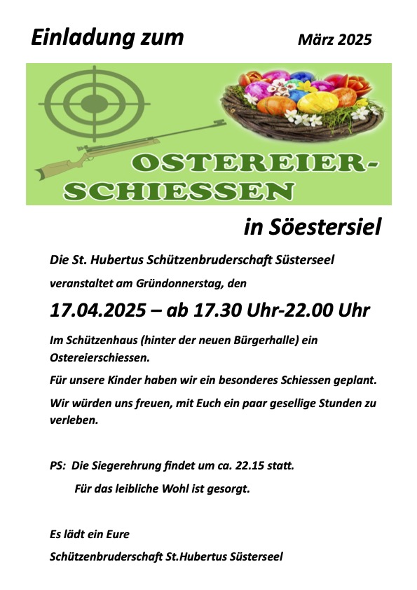 Im Schützenhaus (hinter der neuen Bürgerhalle) ein Ostereierschiessen.